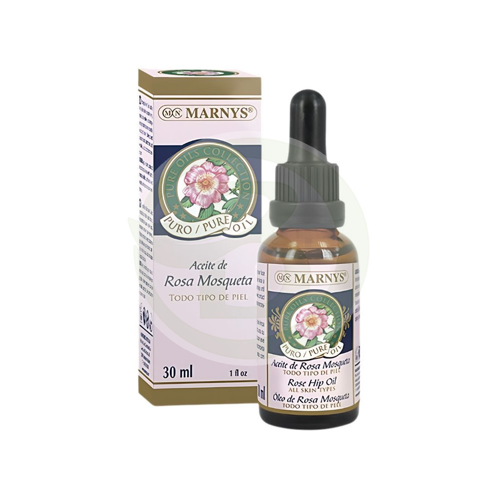 Aceite Puro de Rosa Mosqueta 30Ml. Marnys gracias a su composición rica en ácidos grasos, ayuda a retrasar signos de envejecimiento y lÃneas de expresión en cara y cuello. Además tiene propiedades reparadoras de la piel, ayudando a regenerar el tejido en cicatrices y estrÃas.