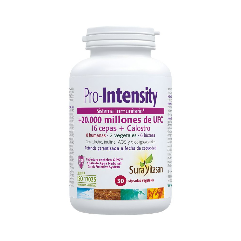 Amido di patata dolce, coltura batterica (20 miliardi di microrganismi vivi per capsula, vedere le informazioni nutrizionali), colostro bovino (da Bos taurus) (leite), inulina (dalla radice di cicoria, Cichorium intybus), arabinogalattano (da Larix laricinia), xilooligosaccaridi, acido L-ascorbico (vitamina C), agenti antiagglomeranti (stearato di magnesio vegetale e biossido di silicio), capsula vegetale enterica GPSTM (rivestimento: idrossipropilmetilcellulosa; soluzione acquosa per protezione enterica; acqua purificata).