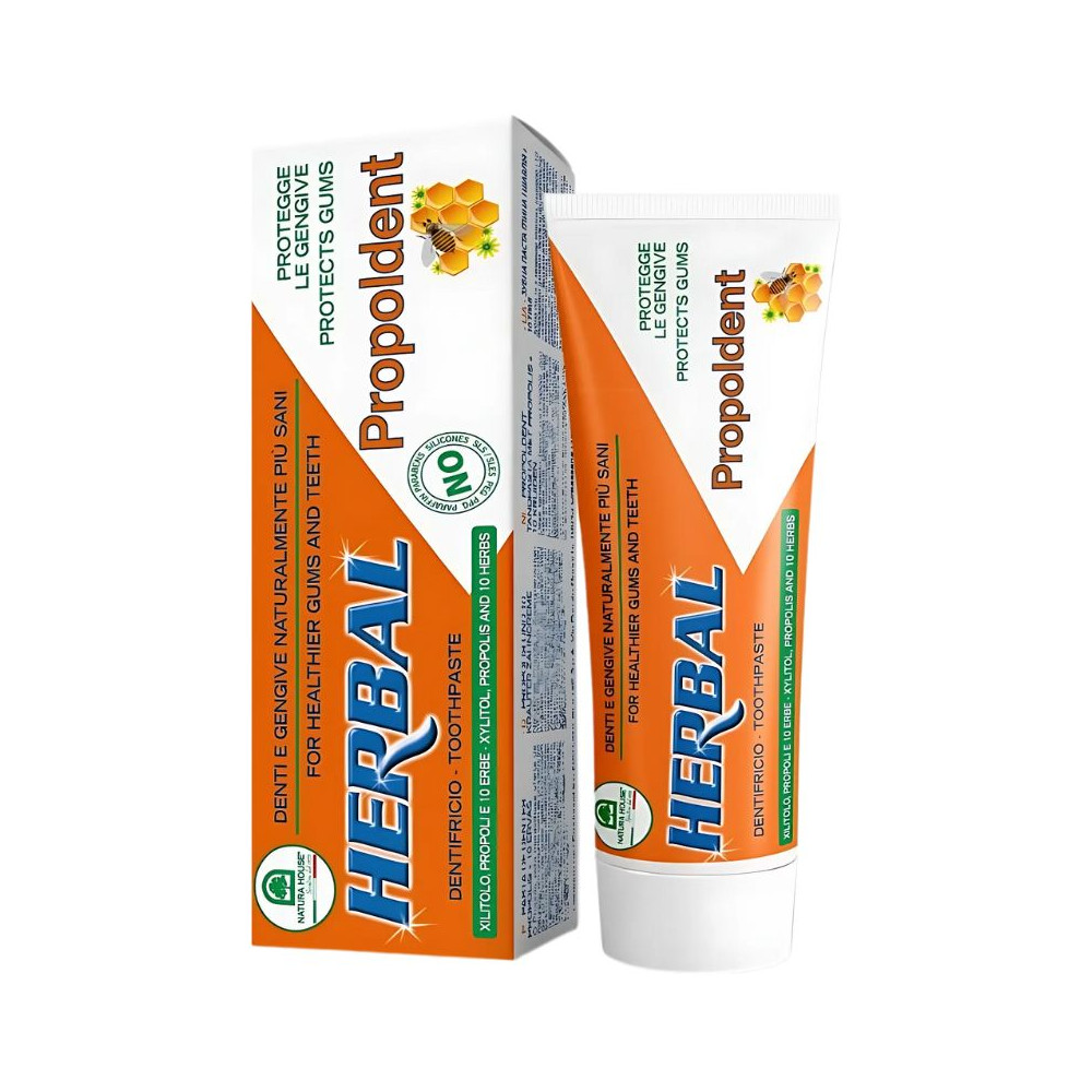 Fluoruro di sodio, glicole propilenico, citrato di zinco, estratto di Mimosa tenuiflora, estratto di malva, estratto di castanha-da-Ãndia, estratto di alcaçuz, estratto di tanchagem, estratto di ratânia, estratto di tiglio, estratto di tormentil, olio di anice, silice idrata, olio di menta piperita, acido glicirretico, gel di aloe vera, propoli, cocamidopropil betaina, bicarbonato di sodio, gomma di cellulosa, estratto di propoli, benzoato di sodio, acqua, limonene, gluconato di calcio, glicerina, profumo, xilitolo, sorbitolo, linalolo, alcol, xilitolo.