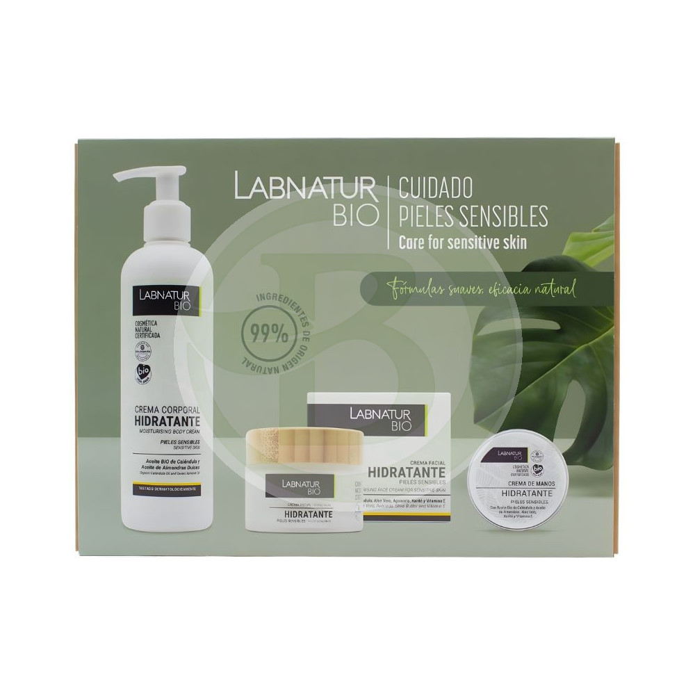 Confezione con 1 Crema Idratante Corpo per SensÃvel Pele (300 ml), 1 Crema Idratante Viso per SensÃvel Pele (50 ml) e 1 Crema Idratante Mãos per SensÃvel Pele (50 ml).