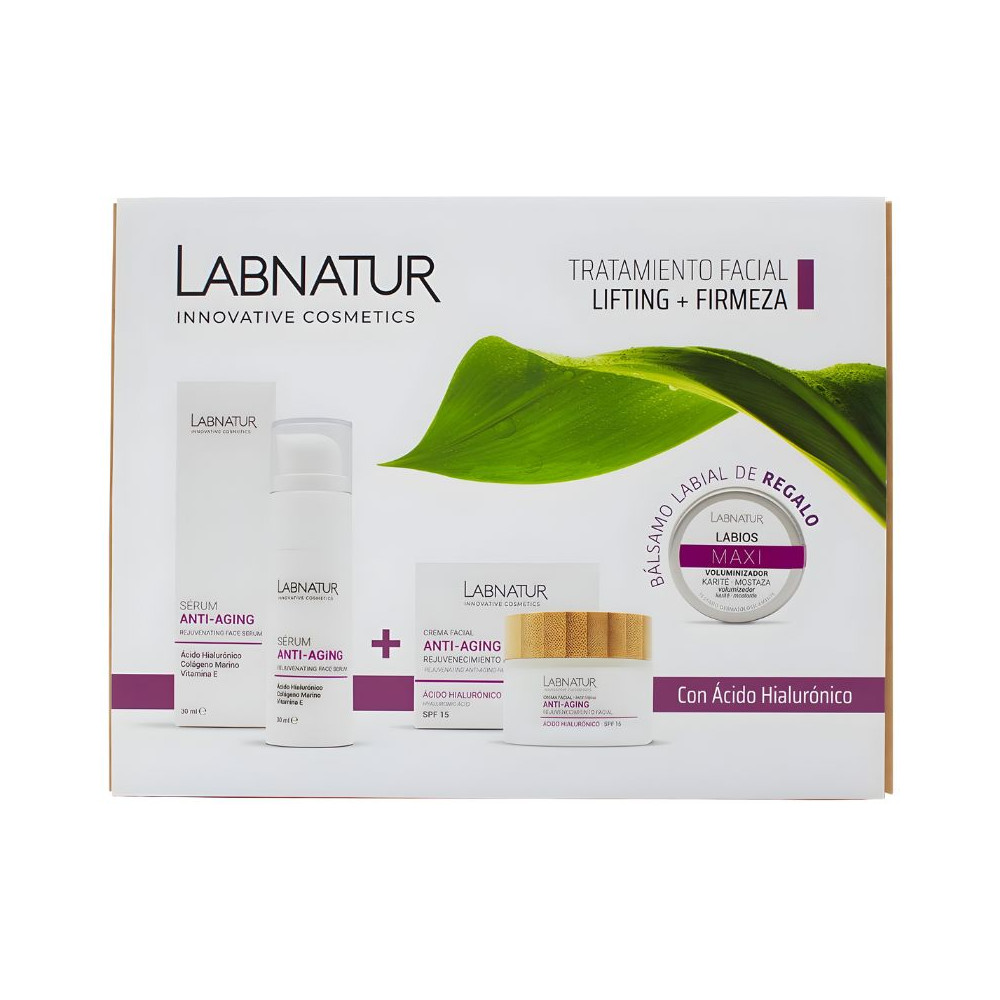 Il kit contiene 1 crema viso anti-età (50 ml) e 1 siero viso anti-età (30 ml) + 1 balsamo labbra volumizzante (15 ml) di toast.