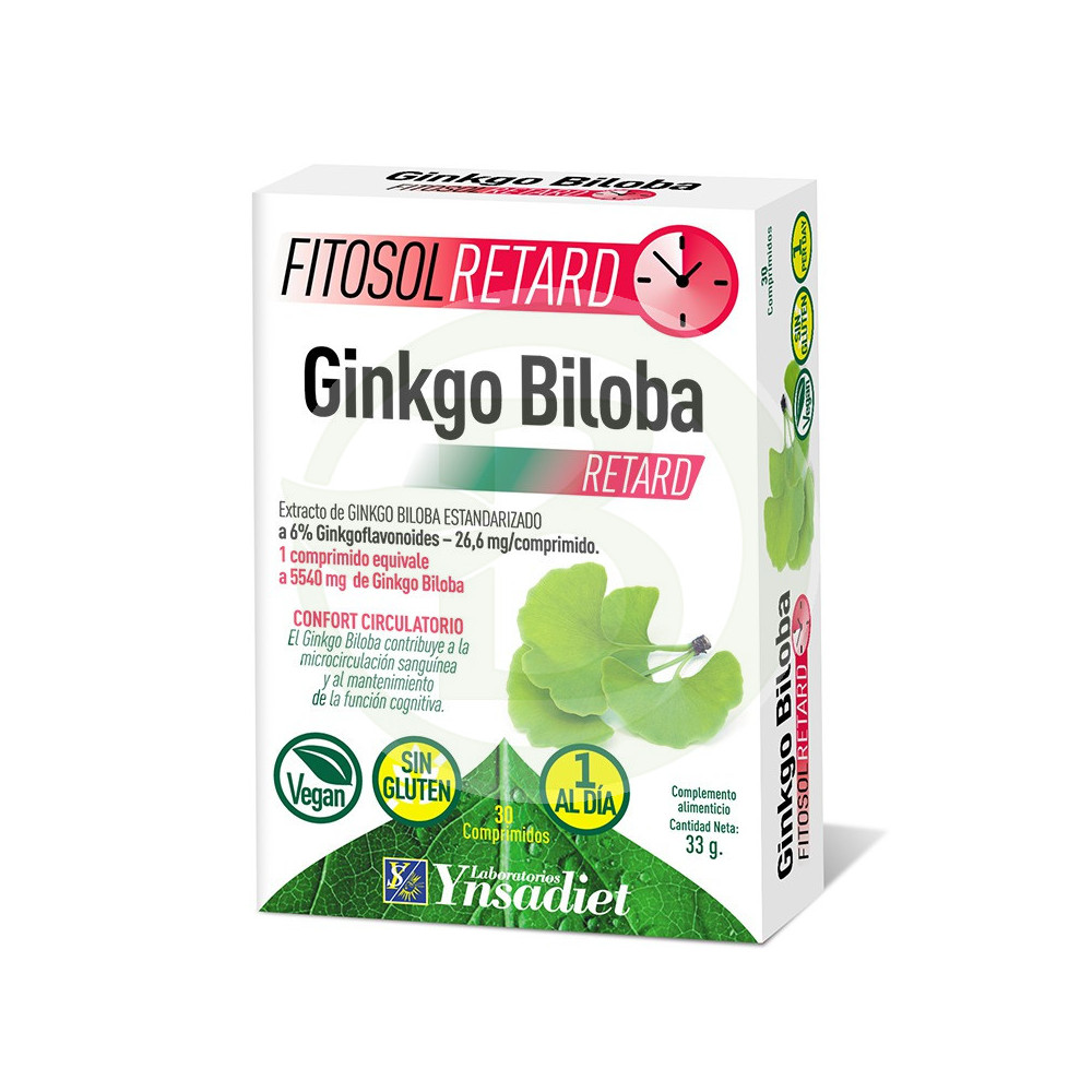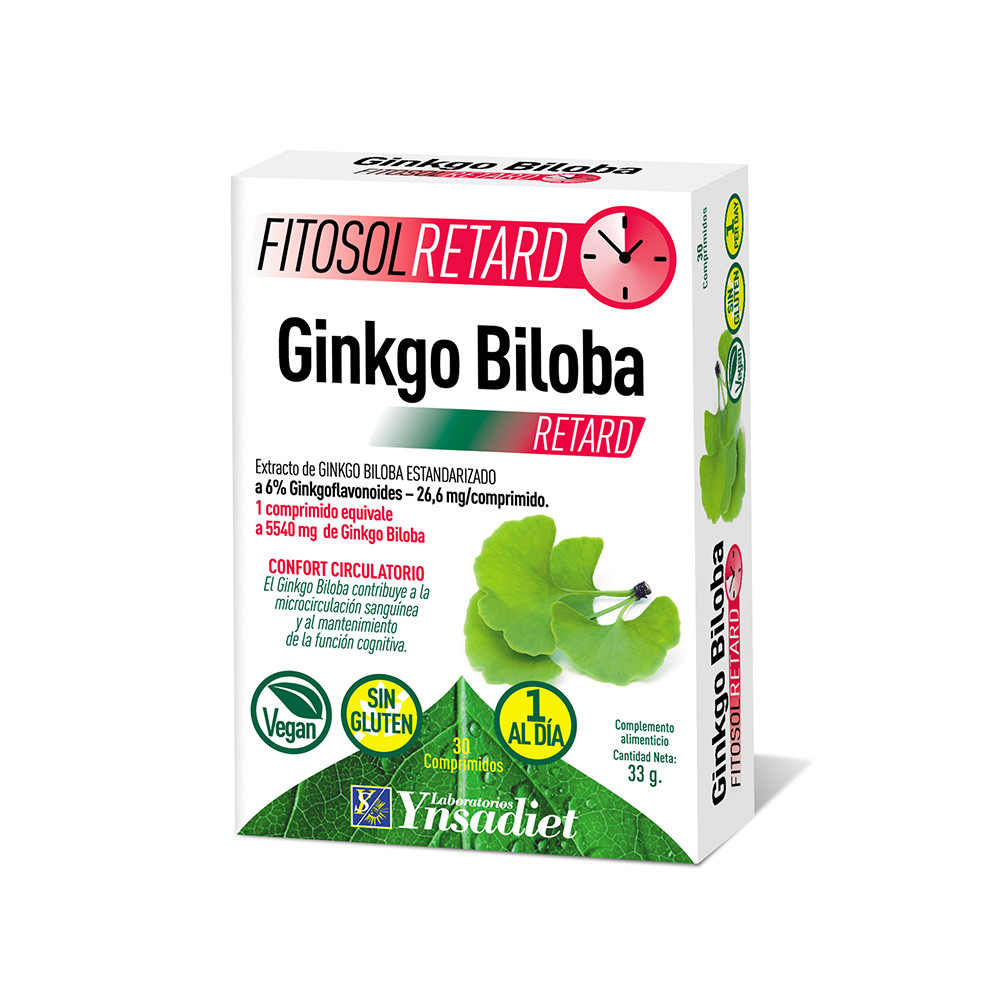 1 Comprimido: Agentes de carga (Almidón de maíz [sulfitos], Hidroxipropilmetilcelulosa, Celulosa, Fosfato dicálcico), Ginkgo biloba extracto seco (12,5:1) (Ginkgo biloba L., hojas): 443 mg, Antiaglomerantes (Estearato de magnesio, Dióxido de silicio).