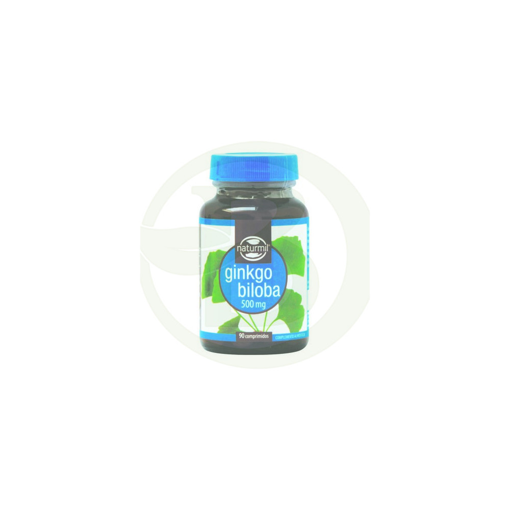Ginkgo Biloba 500mg. 90 comprimidos de Naturmil, complemento alimenticio utilizado comúnmente para aumentar el aporte de oxÃgeno al cerebro, antioxidante, beneficia la circulación sanguÃnea periférica y cerebral.