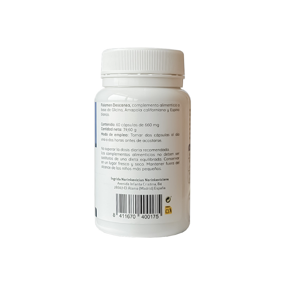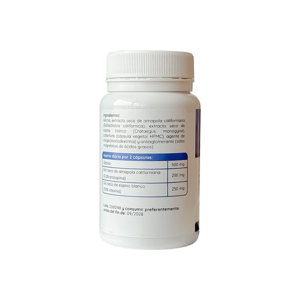 Glicina, estratto secco di papoula da Califórnia (Eschscholzia californica), estratto secco di espinheiro (Crataegus monogyna), rivestimento (rivestimento vegetale HPMC), agente di carica (maltodestrina) e agente antiagglomerante (sali di magnesio degli acidi grassi)