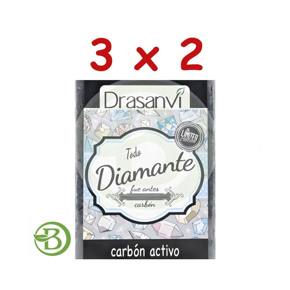Confezione da 3x2 Sapone al carbone vegetale attivo 100G Drasanvi