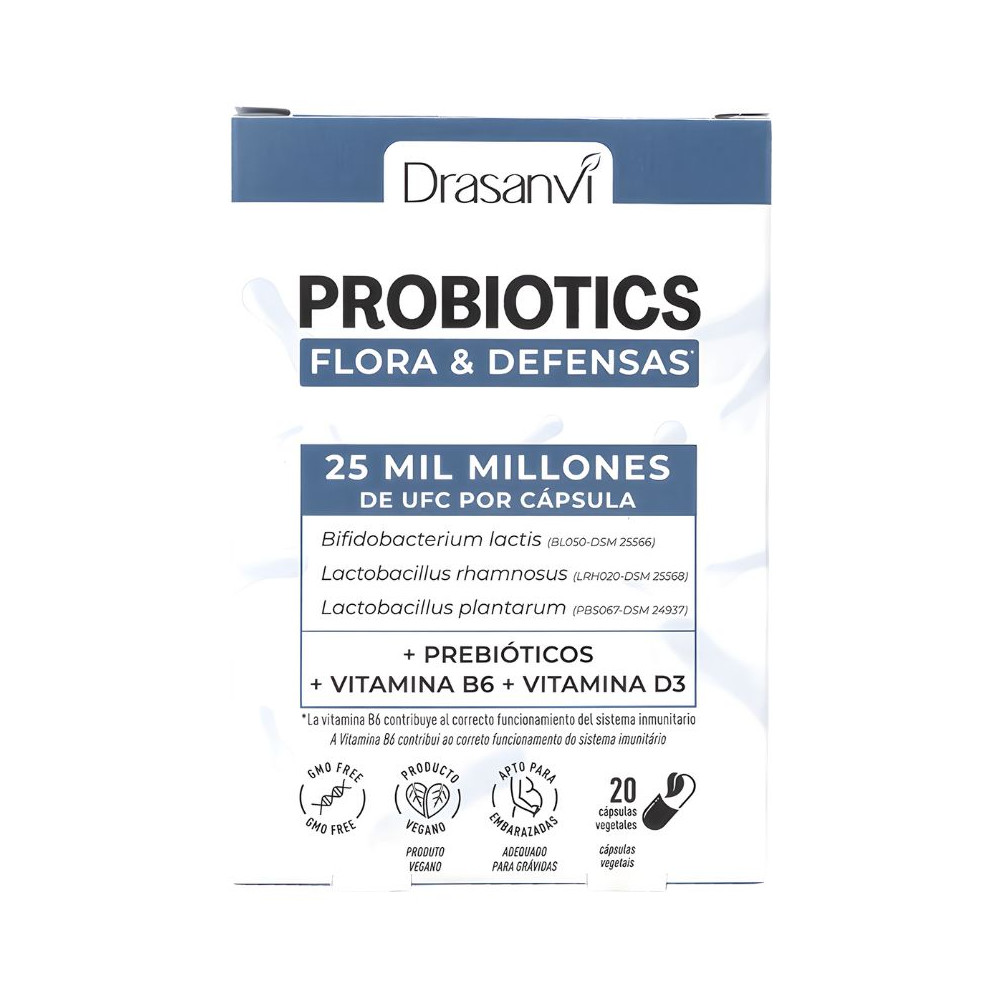 Agente di carica, agente antiagglomerante (amido di mais, sale di magnesio degli acidi grassi), fruttooligosaccaridi, agente di rivestimento (idrossipropilmetilcellulosa), Bifidobacterium animalis subsp. lactis (BL050 - DSM 25566), Lactobacillus rhamnosus (LRH020 - DSM 25568), Lactobacillus plantarum (PBS067 - DSM 24937), vitamina B6 (cloridrato di piridossina), vitamina D3 (colecalciferolo).