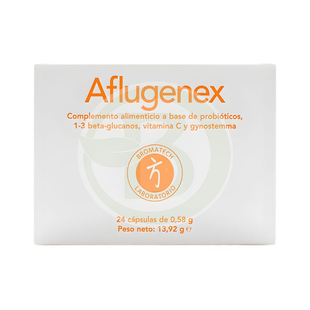 Visualizza ingrandito Aflugenex es un complemento dietético constituido por compuestos totalmente naturales enfocados a equilibrar de una manera sana y saludable el sistema respiratorio. De esta manera, Bromatech ha desarrollado, siempre a partir de materias primas totalmente naturales, un producto cuyos ingredientes contribuyen a la correcta regulación del sistema respiratorio.