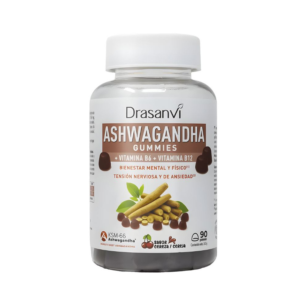Aroma di glicosio, zucchero, acqua, estratto secco di ashwagandha KSM-66 (radice) (Withania somnifera, withanolidi 5%), gelificante (pectine), acidificante (acido citrico), regolatore di acidità (citrati di sodio), colorante (antocianine), aroma naturale, olio vegetale (cocco), vitamina B6 (cloridrato di piridossina), rivestimento (cera di carnauba), vitamina B12 (cianocobalamina).