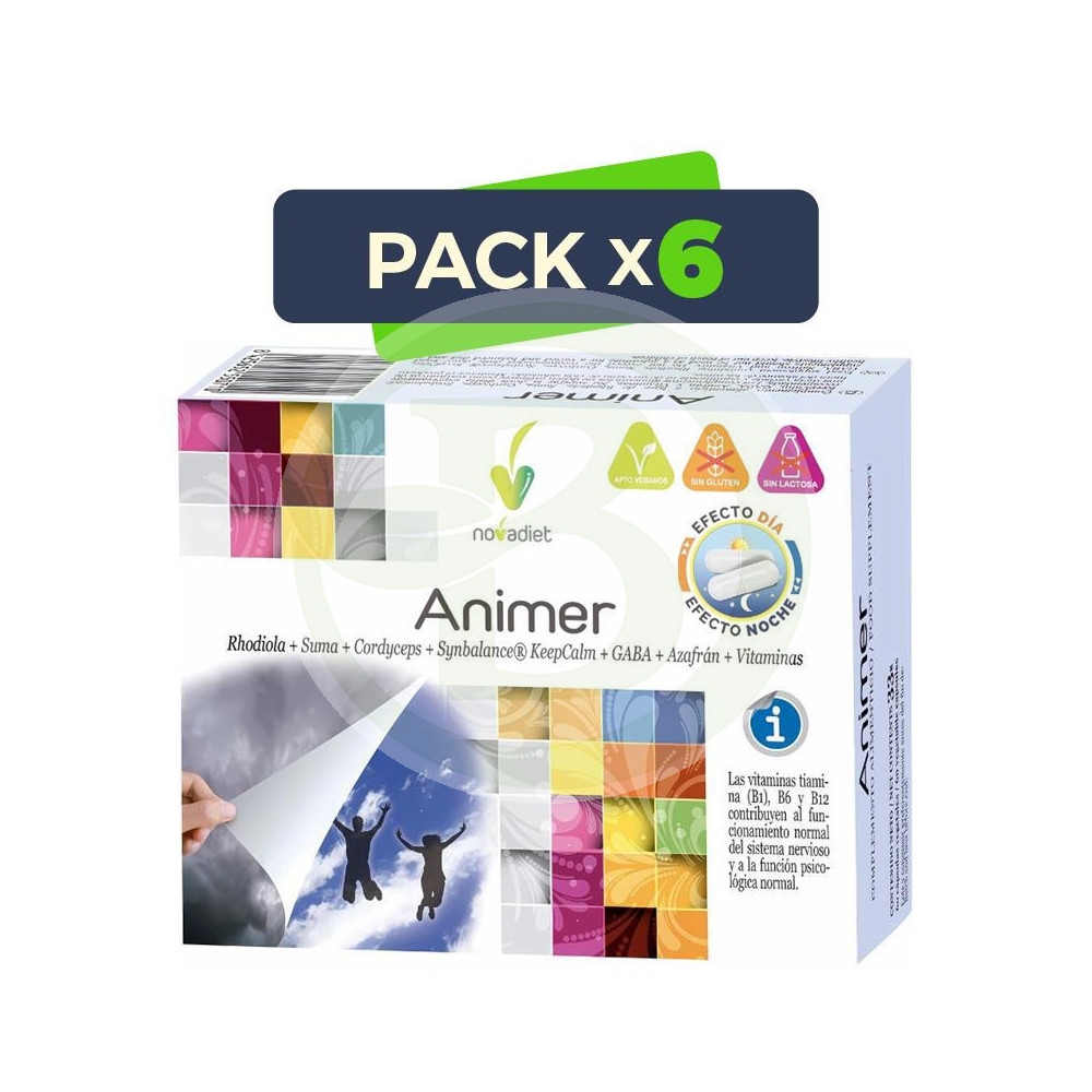 INGREDIENTI ANIMER DAY (blister arancione): Rhodiola, Suma (Pfaffia paniculata ES), Cordyceps sinensis, Zafferano (ES, standardizzato al 2% in safranale), Antiagglomeranti (fosfato di calcio bibasico, cellulosa microcristallina, magnesio stearato). Rivestimento: Acqua, Idrossipropilmetilcellulosa, Ossido di zinco (2,34 mg Zn, 23,4% VNR*).