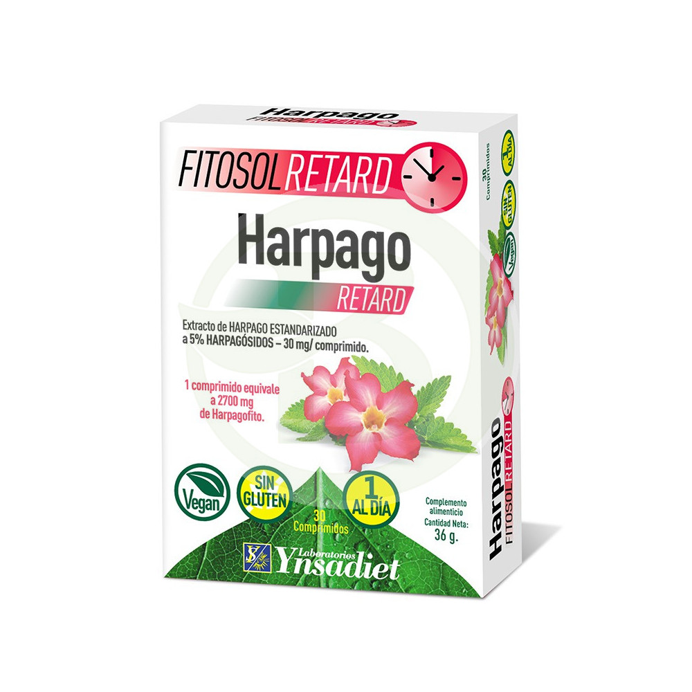 1 Comprimido: Harpagofito extracto seco (4,5:1) (Harpagophytum procumbens D.C. y/o H. Zeyheri L. Decne, raíz): 600 mg, Agente de carga (Hidroxipropilmetilcelulosa, Fosfato dicálcico, Celulosa, Almidón de maíz, Hidroxipropilcelulosa, Carboximetilcelulosa sódica), Antiaglomerantes (Estearato de Magnesio, Dióxido de silicio).