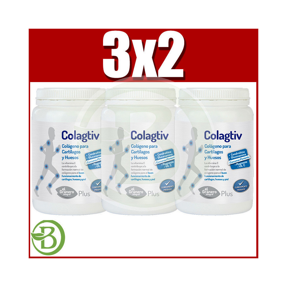 Colagtiv es un nuevo producto dietético de El Granero Integral elaborado con colágeno hidrolizado de origen animal, magnesio, cúrcuma (antiinflamatorio natural), condroitina, glucosamina, pimienta negra y vitamina C. La sinergia de todos estos ingredientes actúa sobre las articulaciones, aportando bienestar y calmando el dolor.
