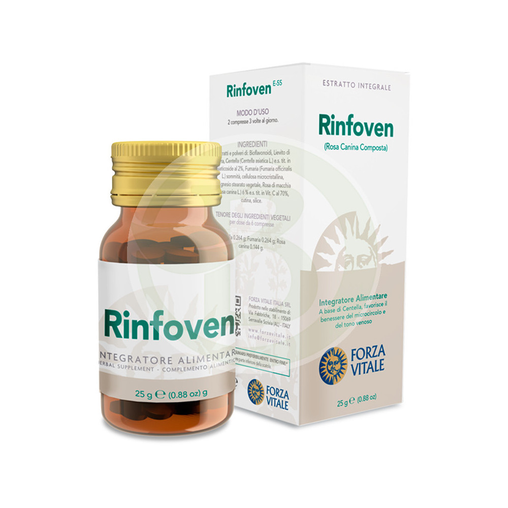 Rinfoven. Composta Rosa Canina (Rinfoven) 25Gr. Forza Vitale . Formula spagirica a base di rosa canina, fumaria e centella asiatica tra gli altri, comunemente usata per favorire la circolazione e il perfetto stato dei vasi.