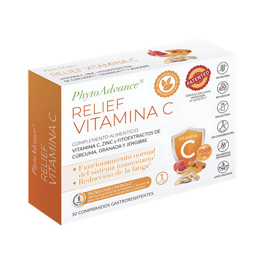 Vitamina C (acido L-ascorbico); agente di carica (cellulosa microcristallina); agente di rivestimento (copolimero di metacrilato anionico); corante (ferroossido giallo); ossido di zinco; agenti antiagglomeranti (biossido di silicio, acidi grassi di magnesio); agente di carica (fosfato di calcio); estratto secco di curcuma (Curcuma longa, rizoma) 40% curcumina; estratto secco di romã (Punica granatum, casca e sementes); estratto secco di zenzero (Zingiber officinale, radice).