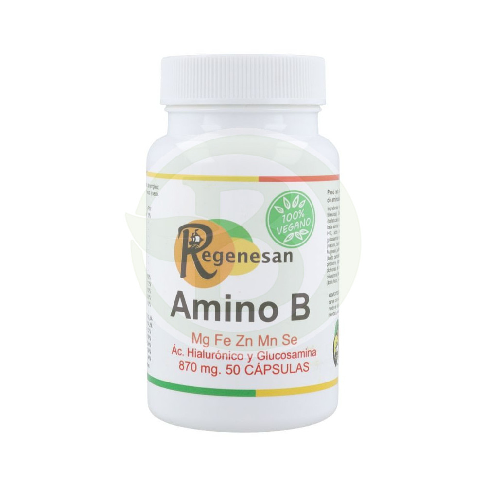 Regenesan Amino-B es un producto dietético que aporta minerales, aminoácidos, vitaminas y glucanos.
